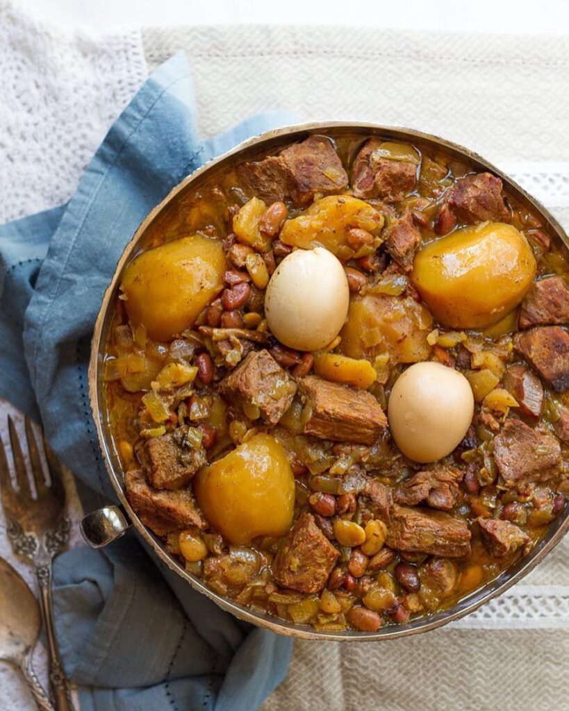 Czulent to tradycyjna potrawa kuchni żydowskiej, spożywana w Szabat. Szabat, ja wiemy, zaczyna się w piątek o zachodzie słońca i kończy w sobotę o tej samej porze. Tak jak Bóg po sześciu dniach pracy odpoczął, tak samo Żydzi odkładają siódmego dnia tygodnia pracę. To czas kiedy się modlą, śpiewają religijne pieśni, zakładają odświętne stroje, zapalają szabasowe świece i jedzą specjalne świąteczne potrawy.