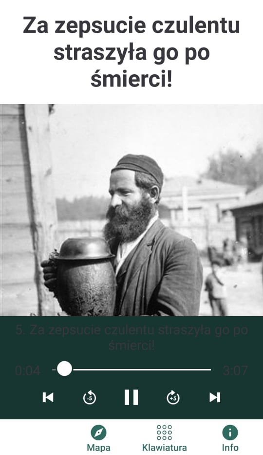 Kroki które usłyszysz w tle wyznaczają rytm naszego spaceru. Jeśli chcesz się gdzieś zatrzymać, wejść do budynku, czy zrobić zdjęcie – włącz pauzę w aplikacji. Aby wziąć udział w spacerze, użyjemy też jednego z najdoskonalszych wynalazków świata- czyli własnej wyobraźni. Pomogą nam też współczesne i archiwalne zdjęcia.