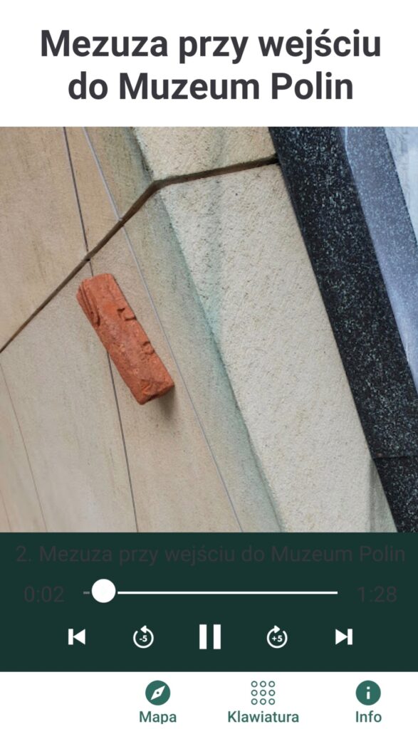 1. [icon name=”headphones-alt” prefix=”fas”] Mezuza przy wejściu do Muzeum Polin