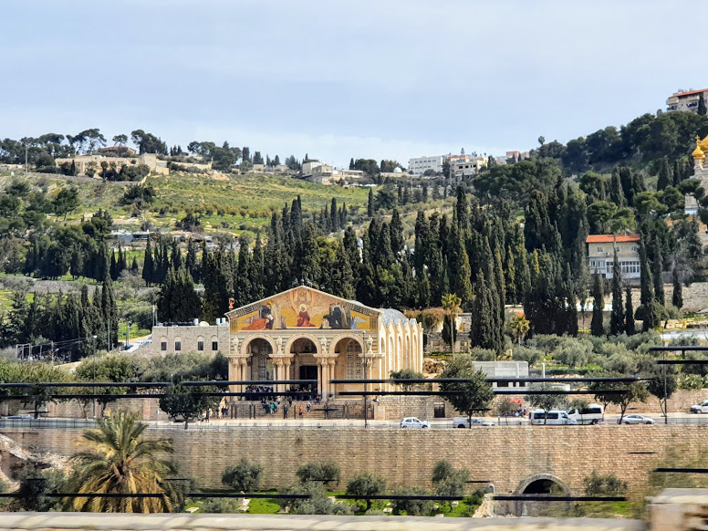 Oczywiście to Getsemani, w Polsce nazywany też Ogrójcem, z Bazylika Agonii – czyli miejsce gdzie modlił się Jezus w na Górze Oliwnej, przed pojmaniem i ukrzyżowaniem na Golgocie. Być może korzenie tych drzew pamiętają Jezusa? Kto to wie 🙂